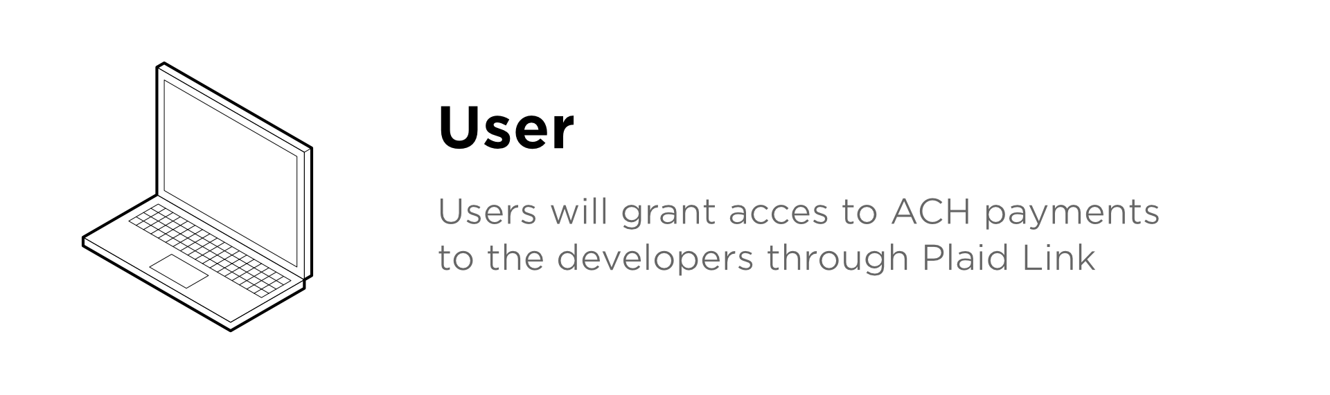 : An ACH process might be implemented by a developer who has a software application looking to sell items and a user willing to buy them. These items could be physical products, digital applications, or any other services. Ideally, these items are registered in a online store that can keep track of them and record purchases in a database. Because records need to be kept to process the purchases—whether or not they were executed through ACH—most developers leverage existing ecommerce solutions to help manage their online stores. And in addition to having the application and goods for sale, developers need to register themselves with Stripe, providing personal information, details about their businesses, contact information, and a valid Social Security Number. Plaid doesn’t require information beyond a name and email to get started, although processing more than 100 users calls for some additional info.